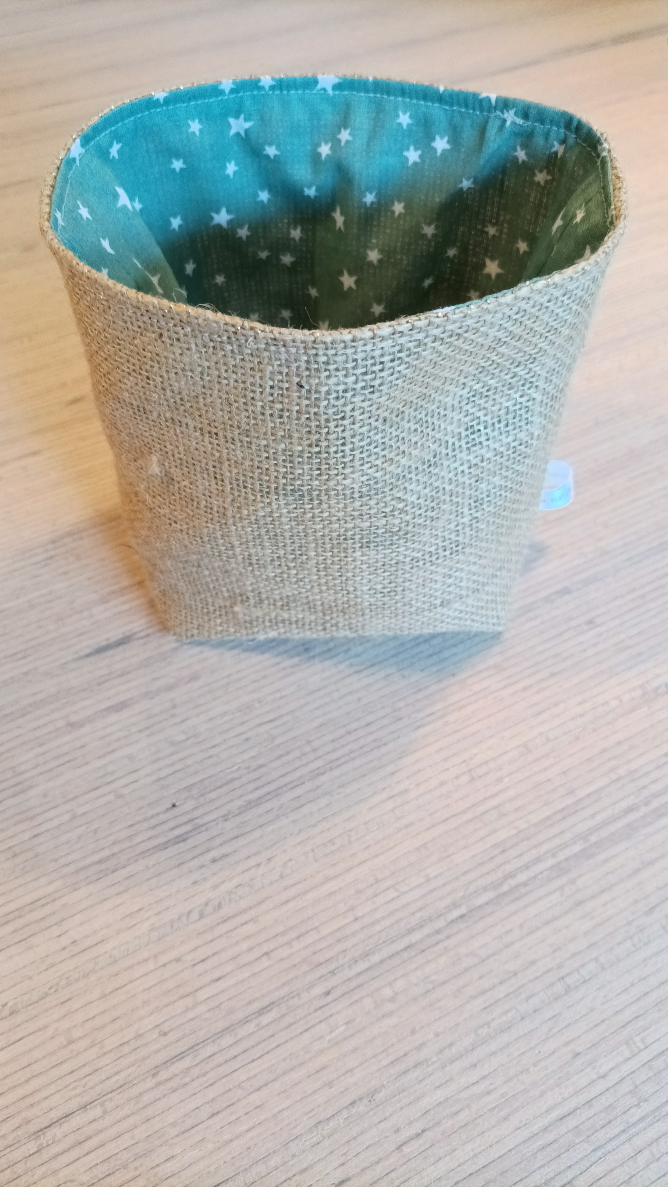 Panier en toile de jute pailletée et tissu vert kaki 100% coton certifié Oeko-tex