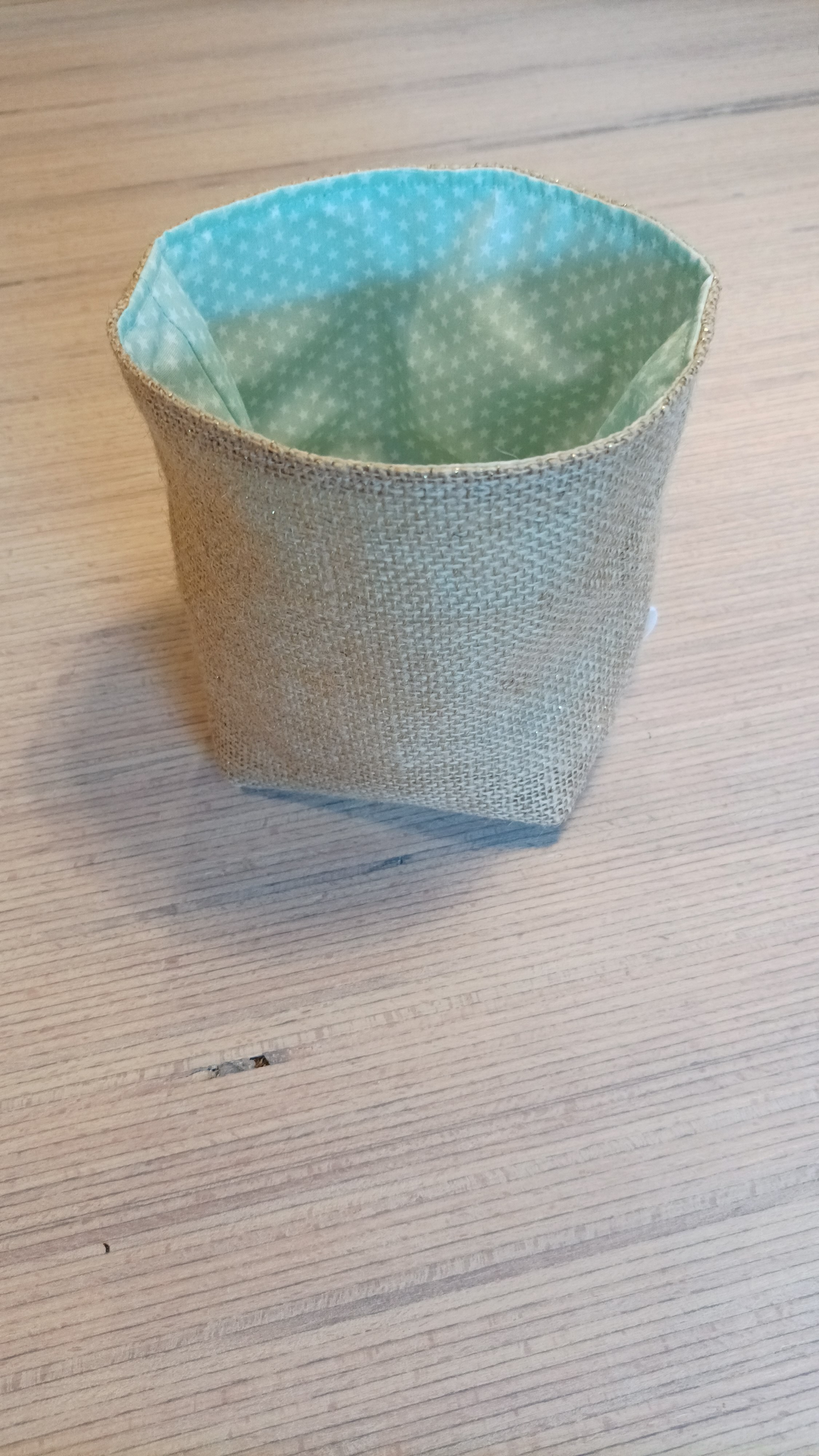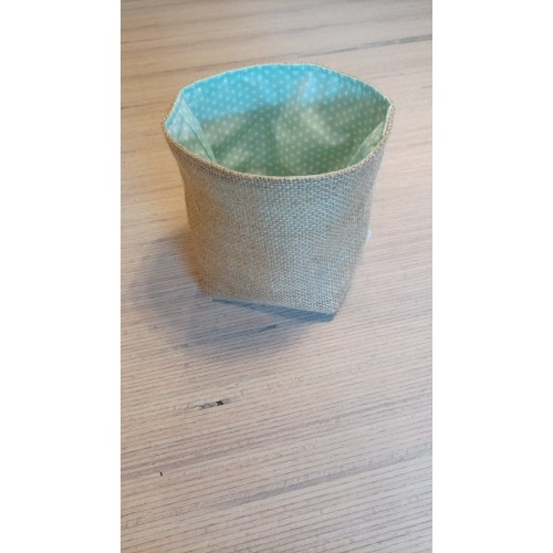 Panier en toile de jute pailletée et tissu vert clair 100% coton certifié Oeko-tex