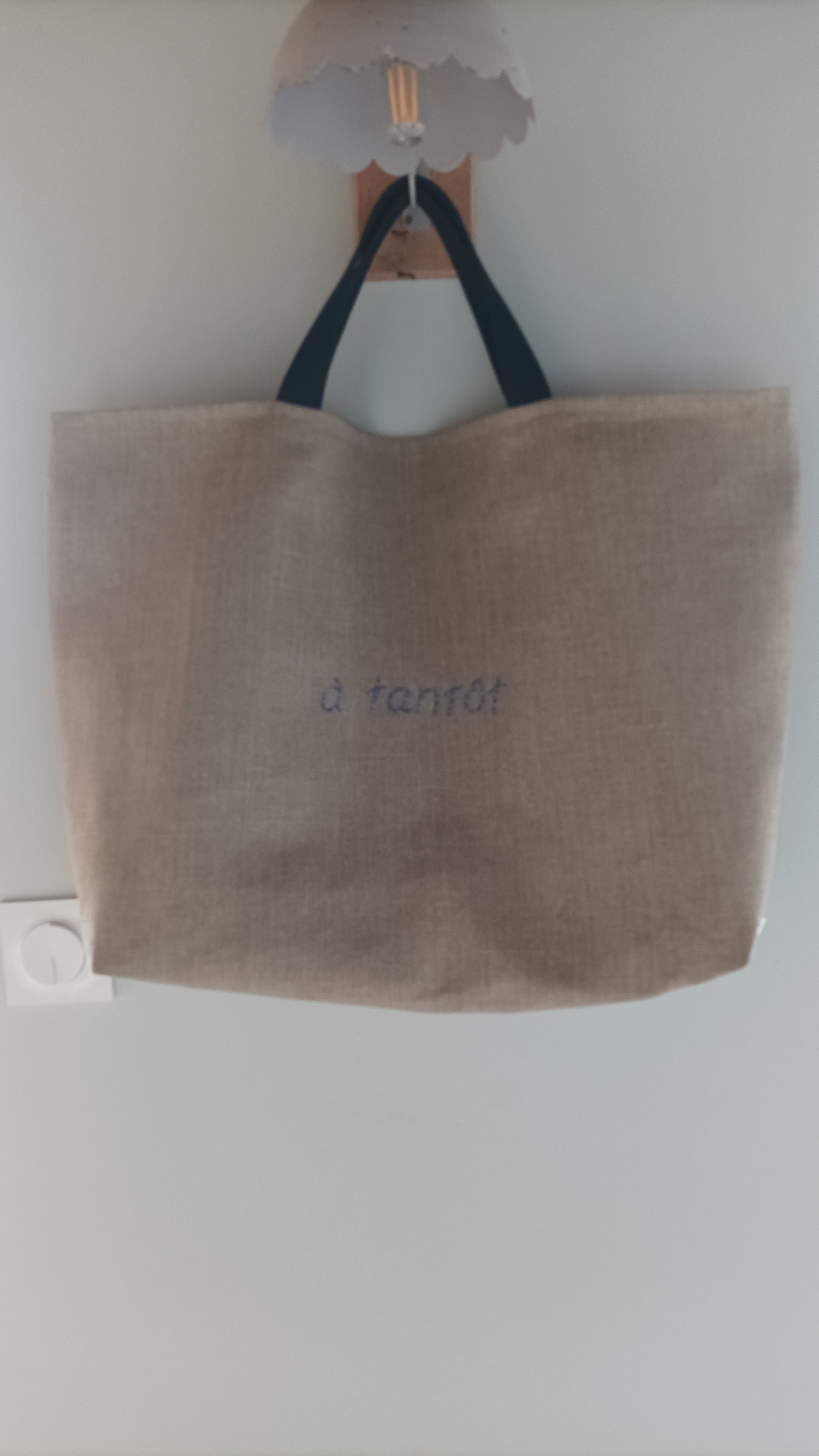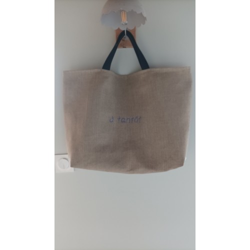 Grand Ca'bois en lin brodé et tissu coton fleurs blanches fond bleu oeko-tex - Broderie A Tantôt