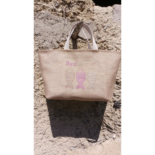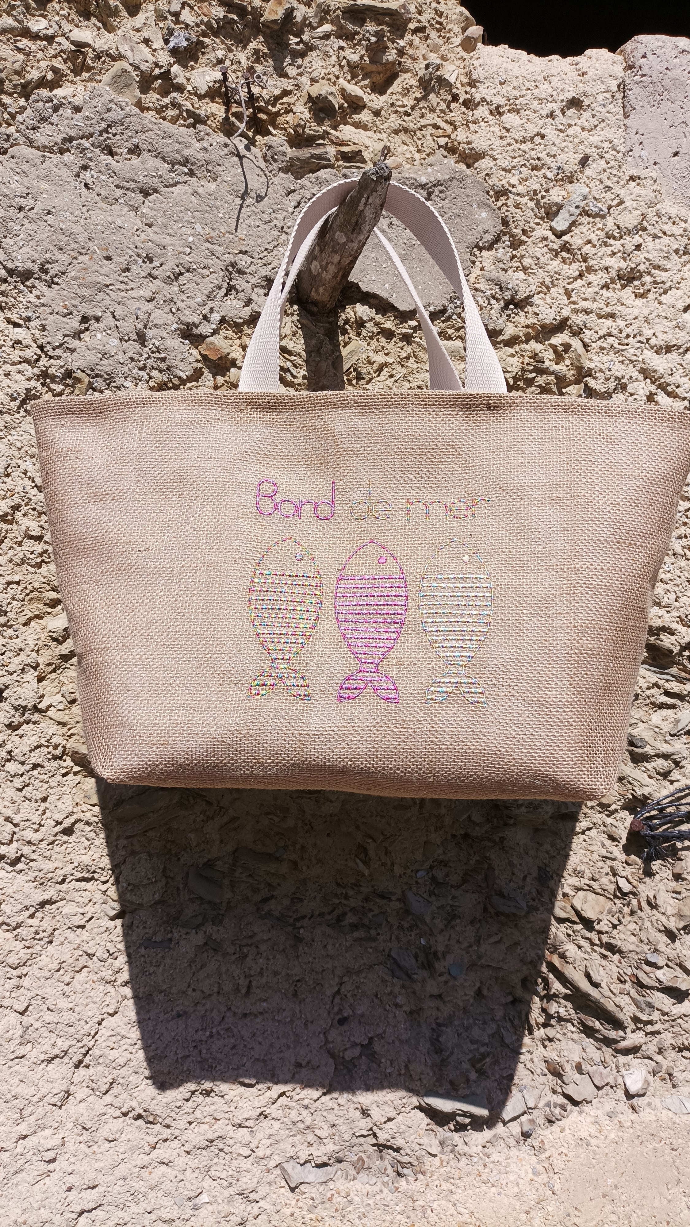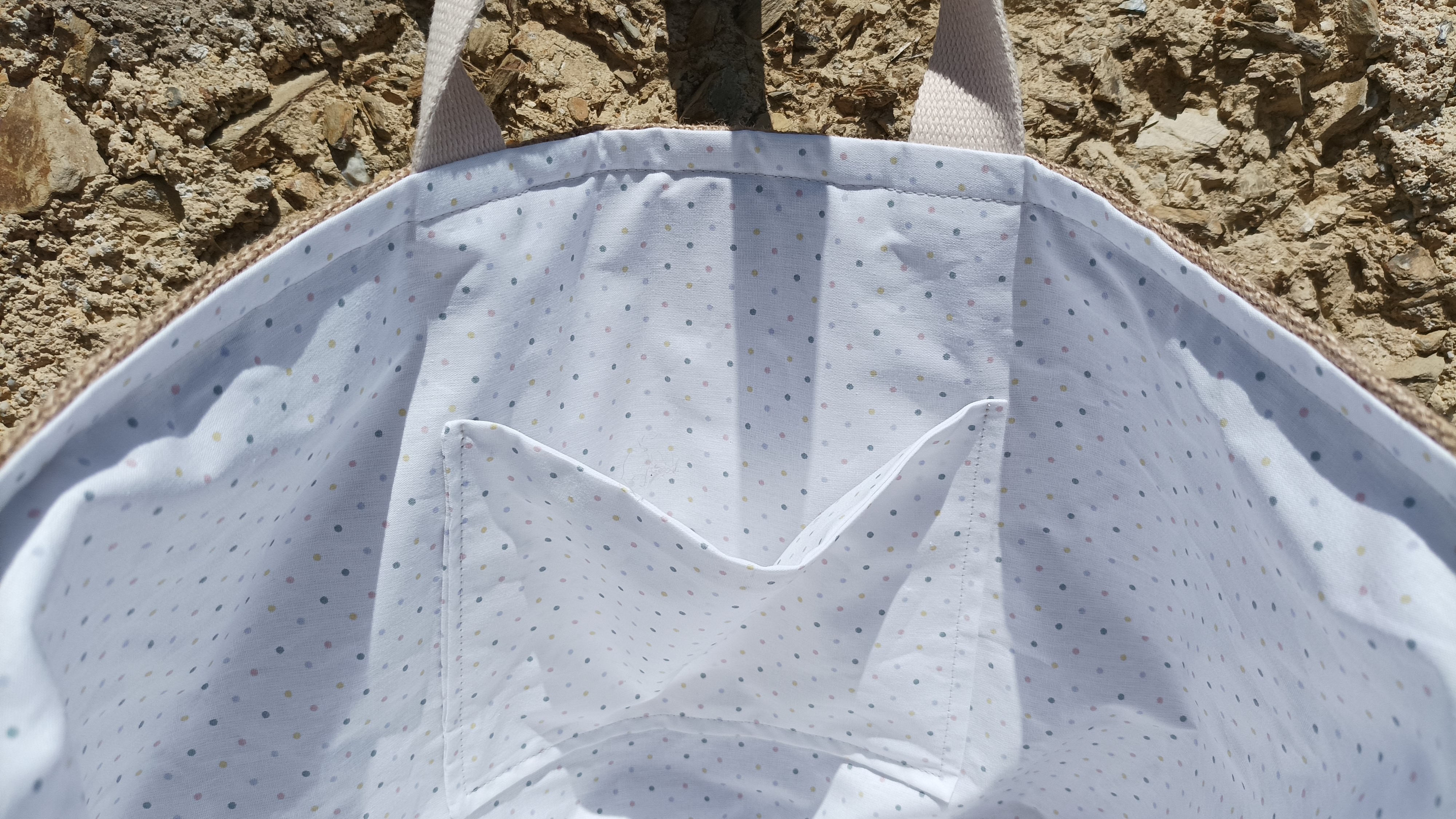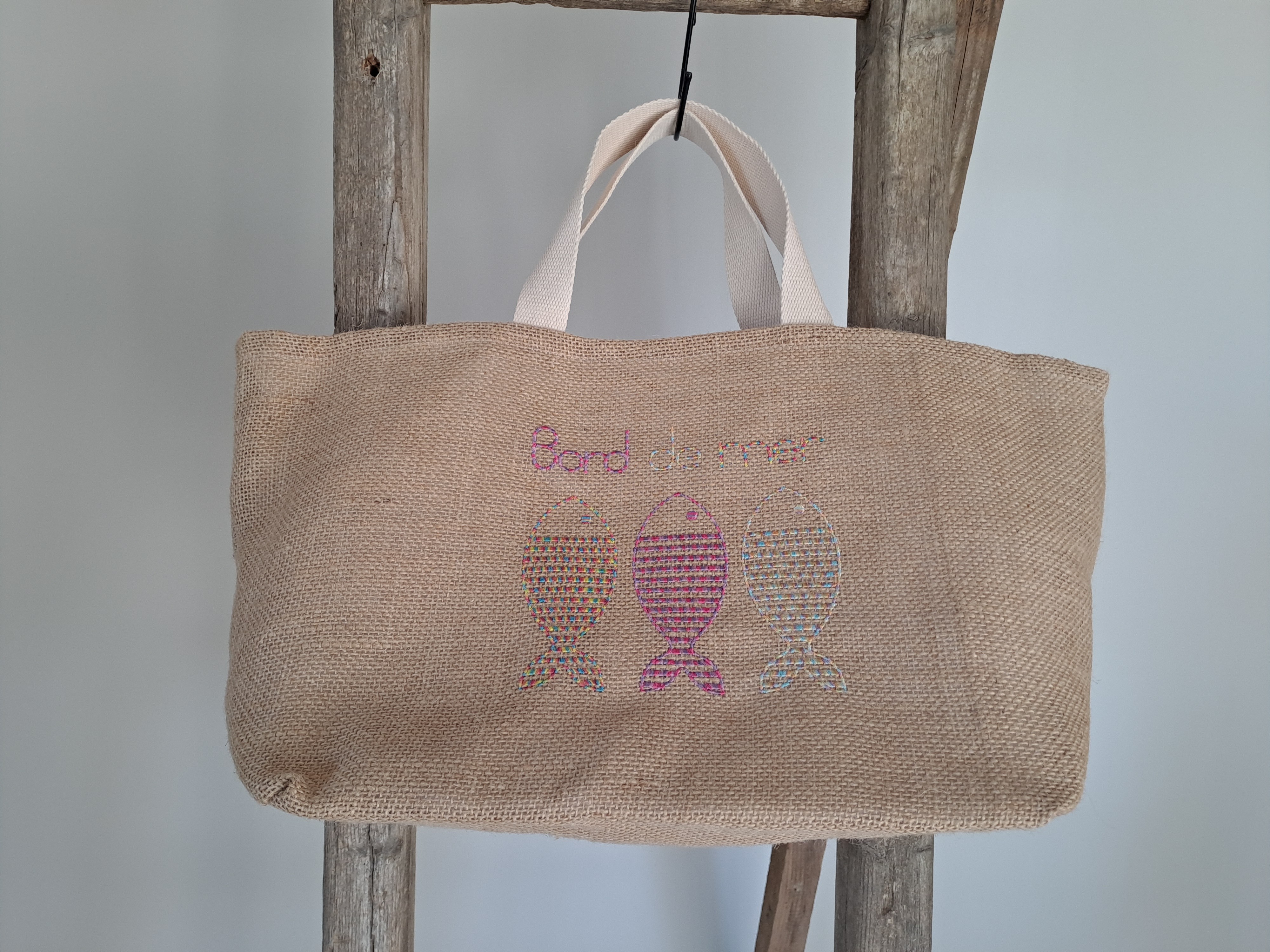 Ca'bois brodé en toile de jute et tissu coton blanc avec petits pois mutlicolores certifié Oeko-tex