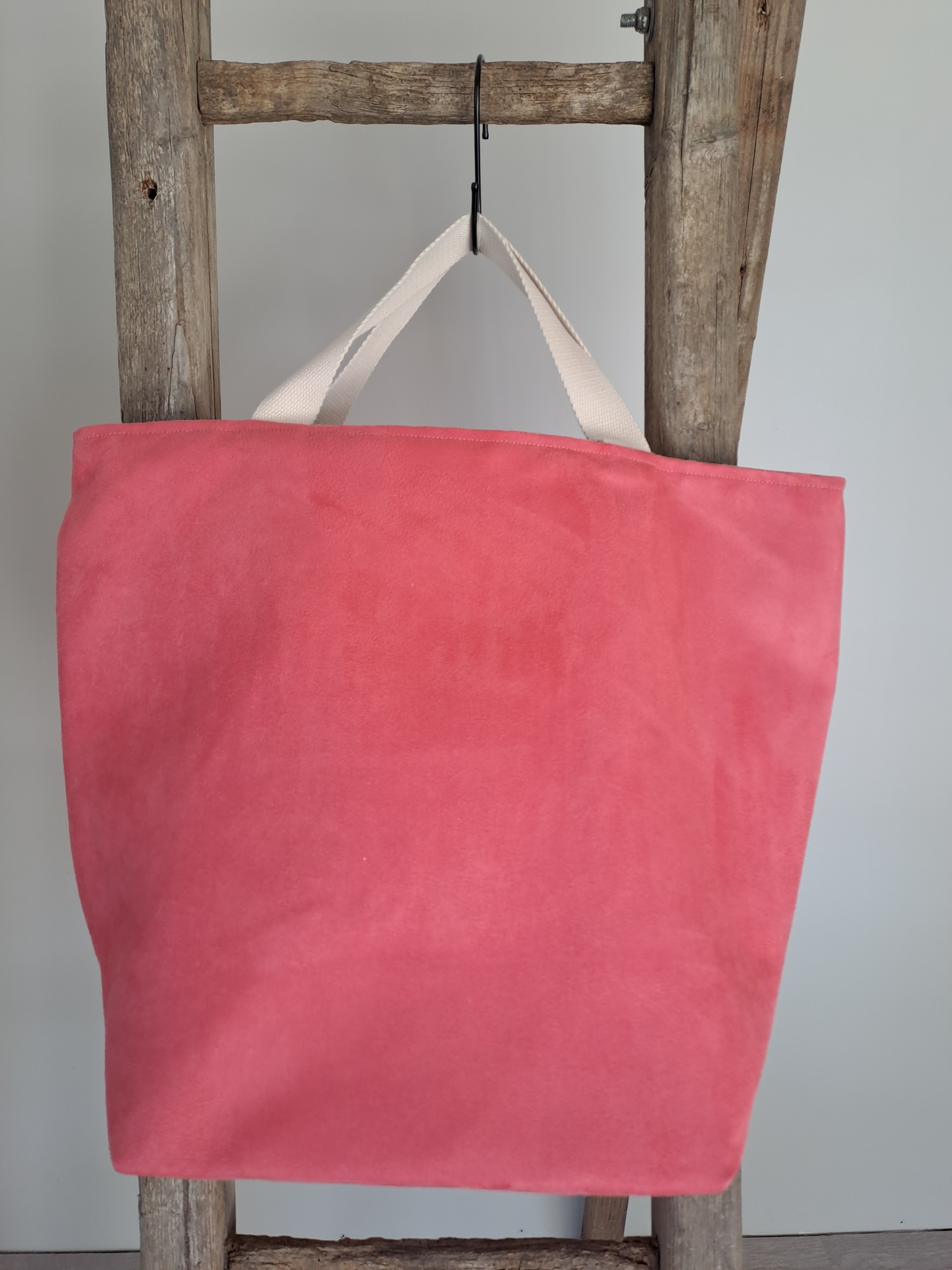 Ca'bois en tissu suédine couleur corail et tissu coton blanc avec petits pois multicolores certifié Oeko-tex