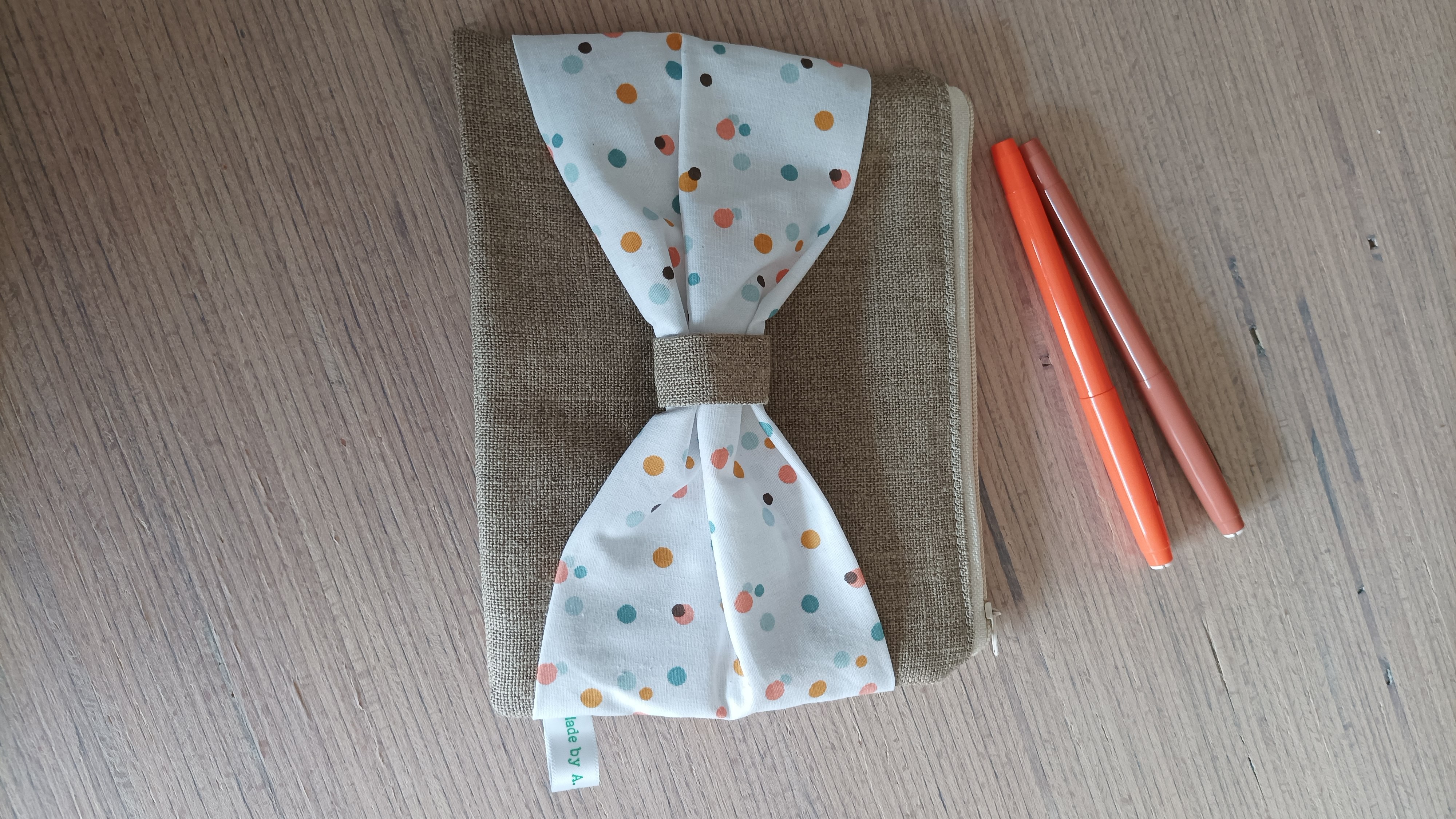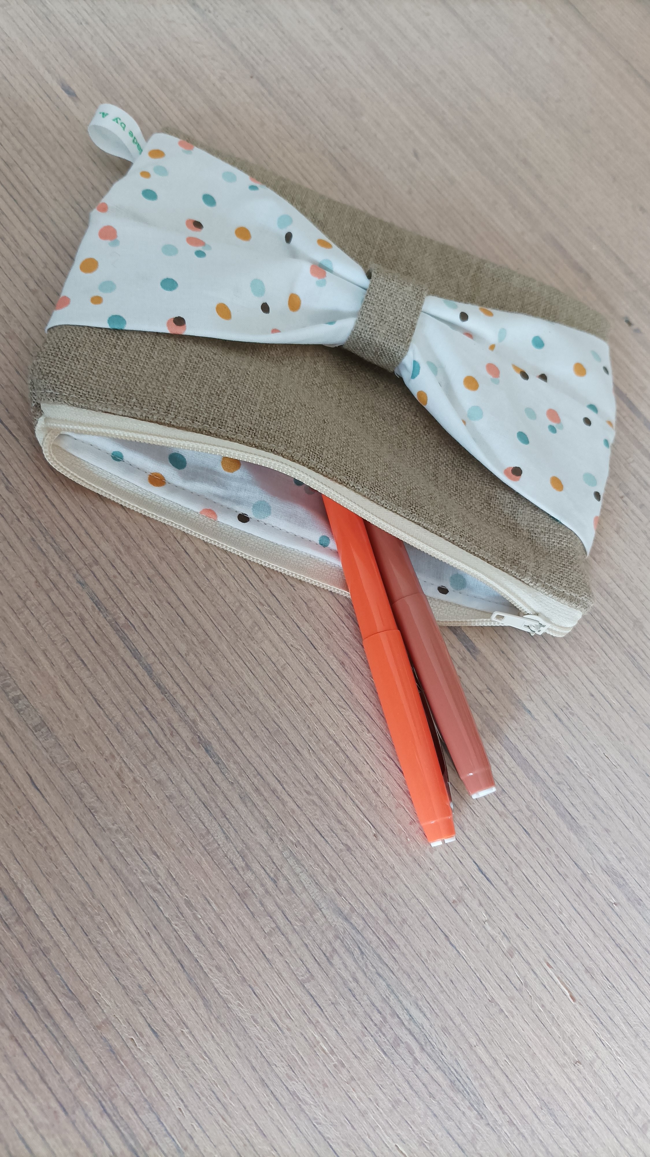 Trousse en toile de lin et tissu blanc petits pois multicolores