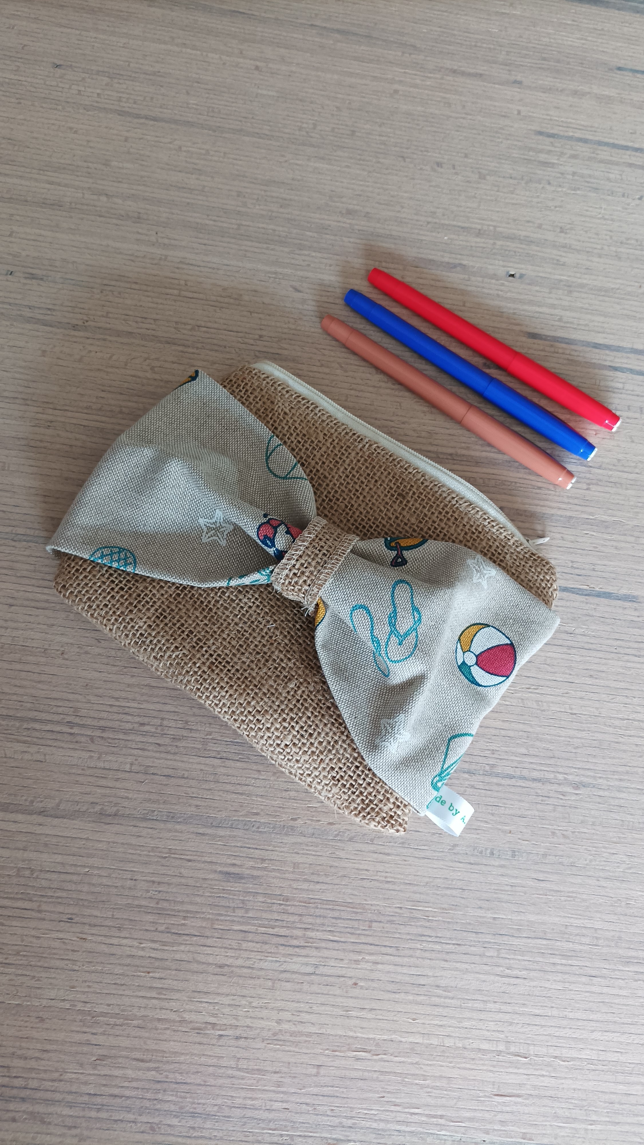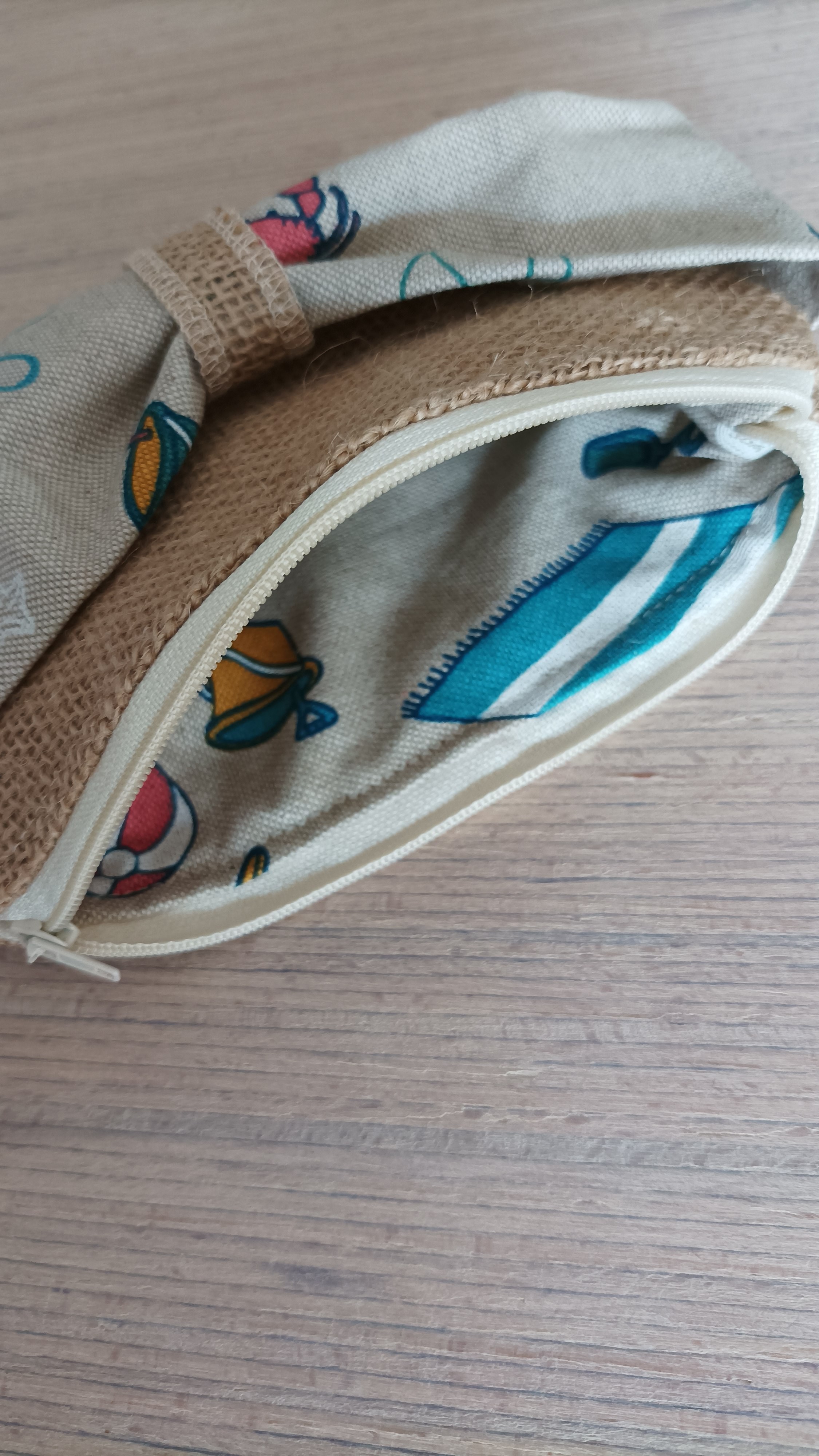 Trousse en toile de jute et tissu lin bord de mer - fermeture éclair écru