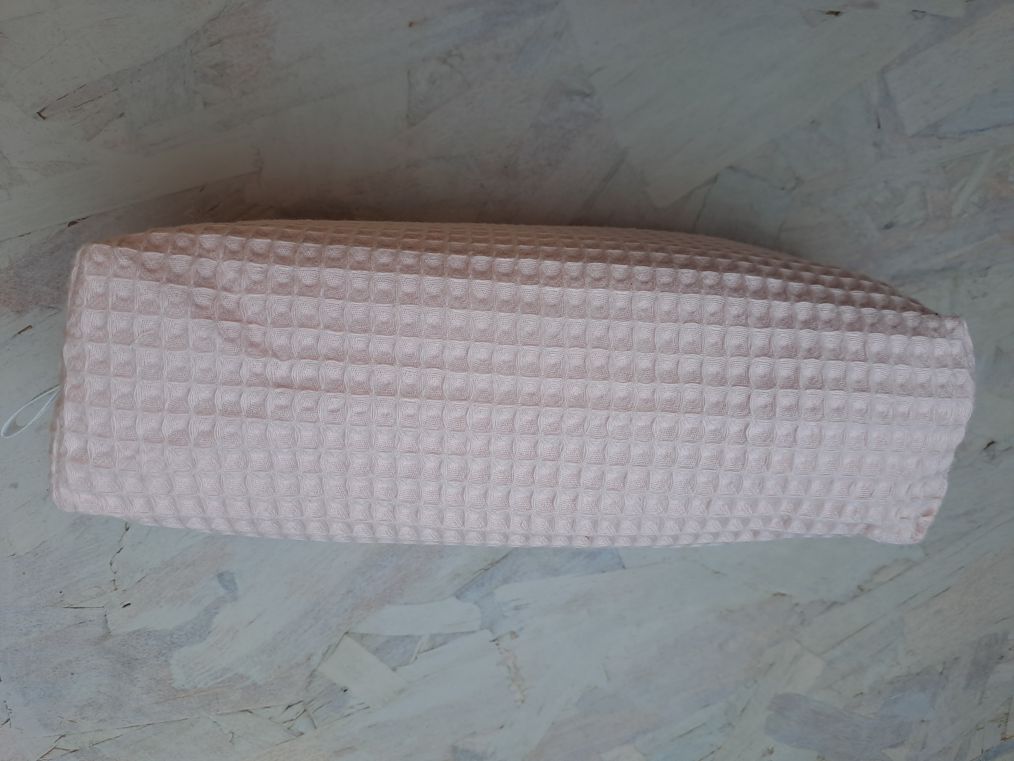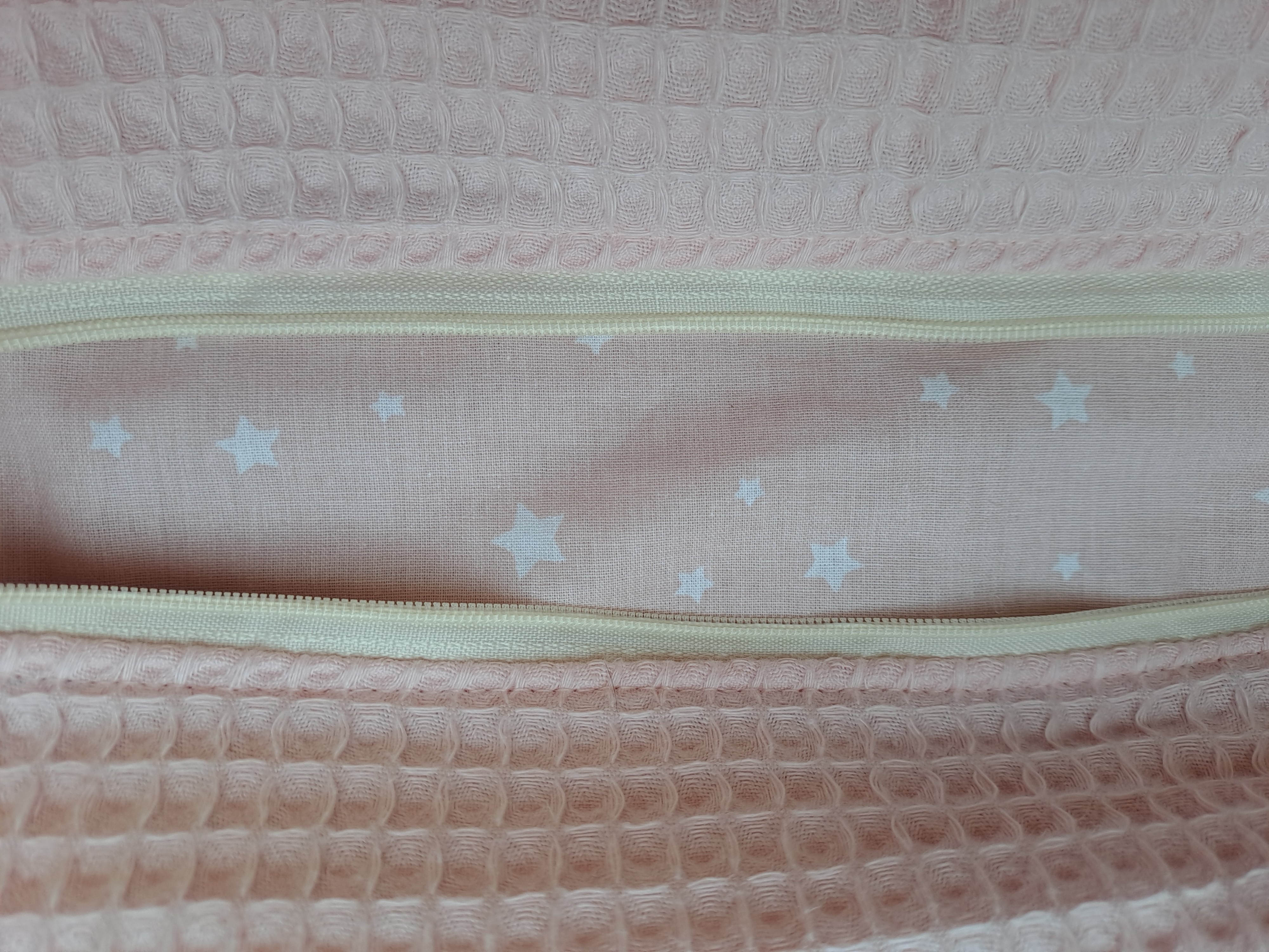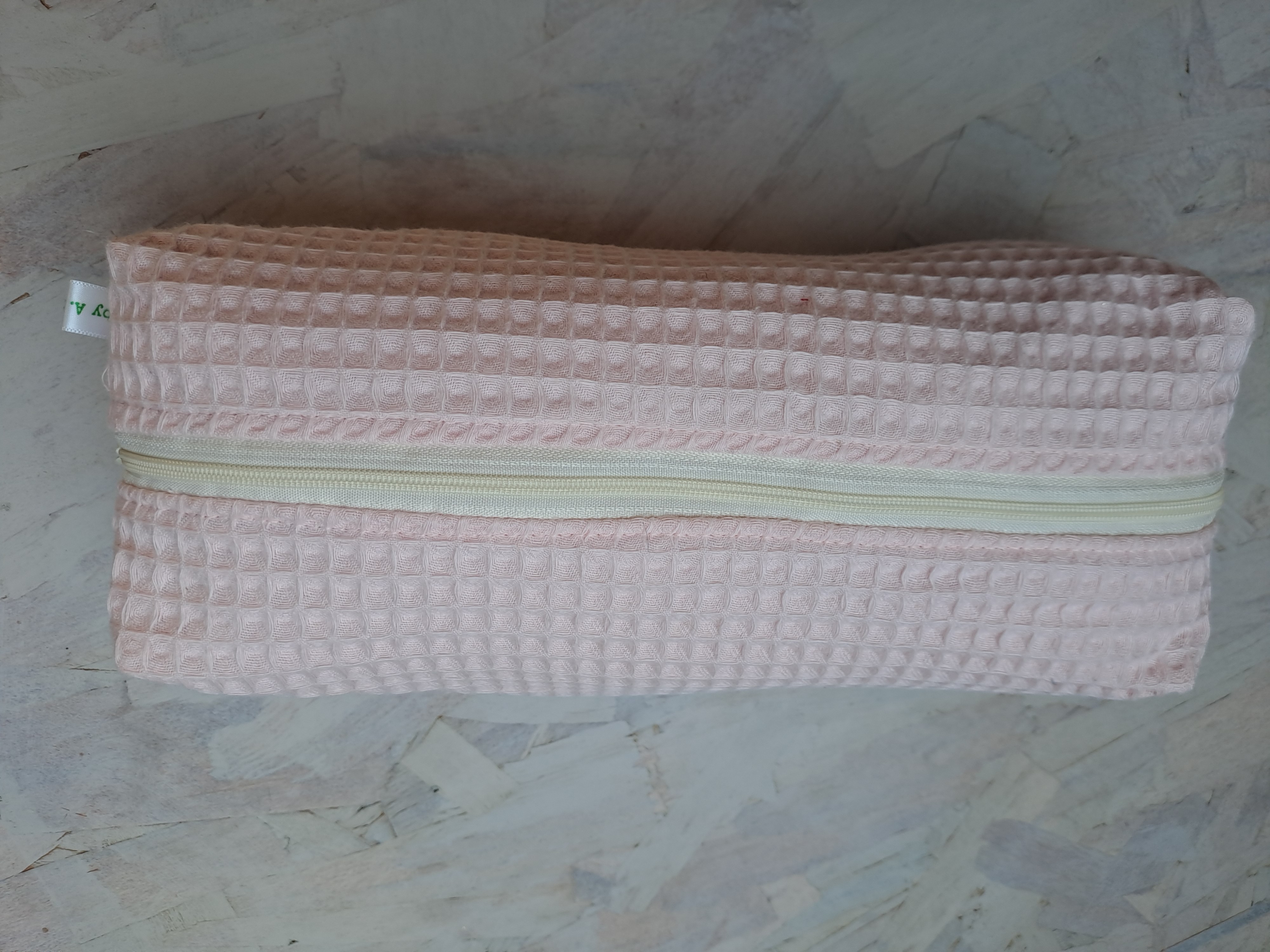 Grande trousse en tissu nid d'abeille rose et tissu intérieur rose avec de petites étoiles blanches