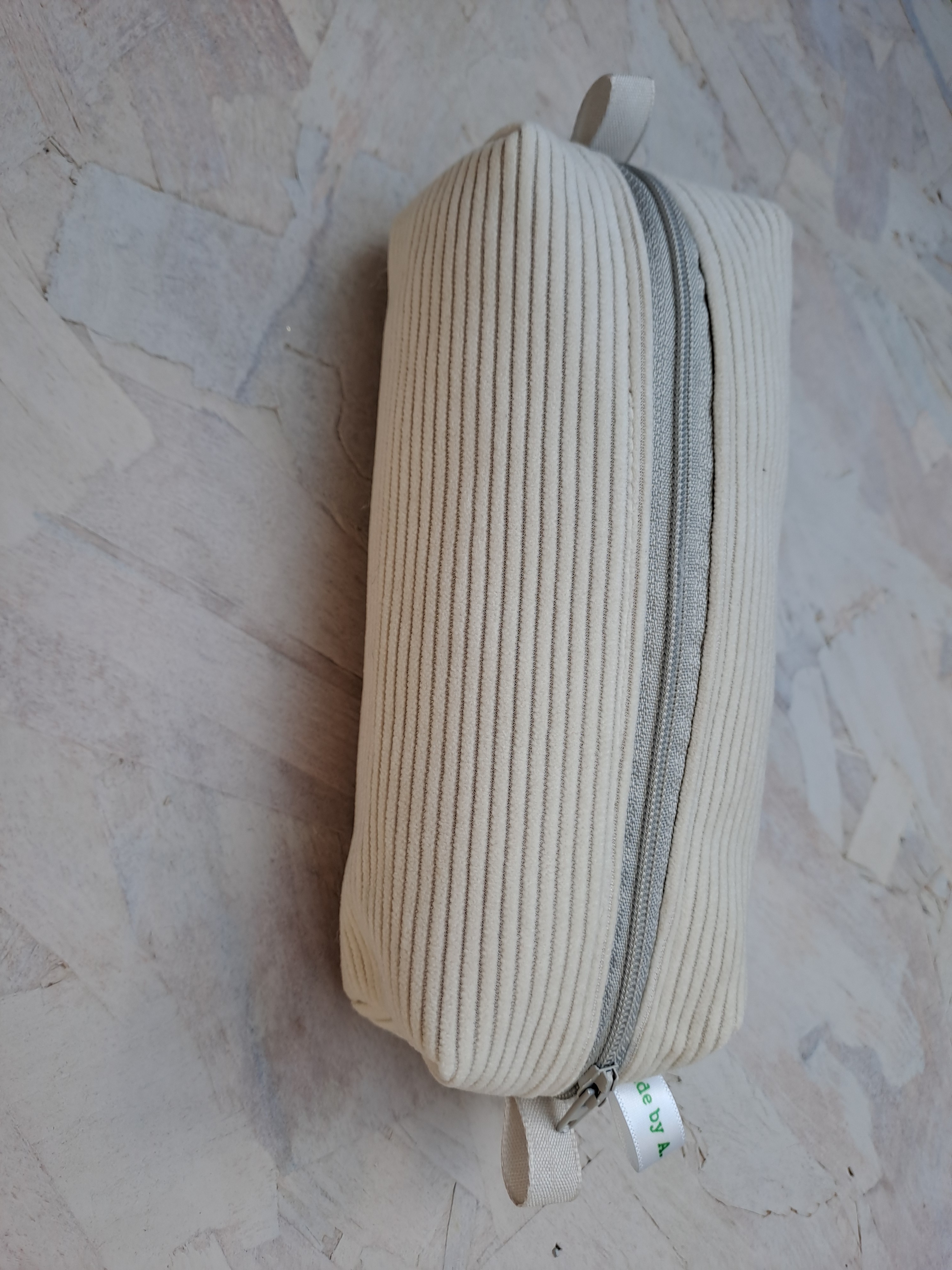 Trousse en tissu velours écru et tissu intérieur taupe petites étoiles blanches