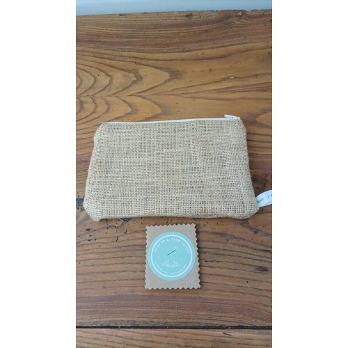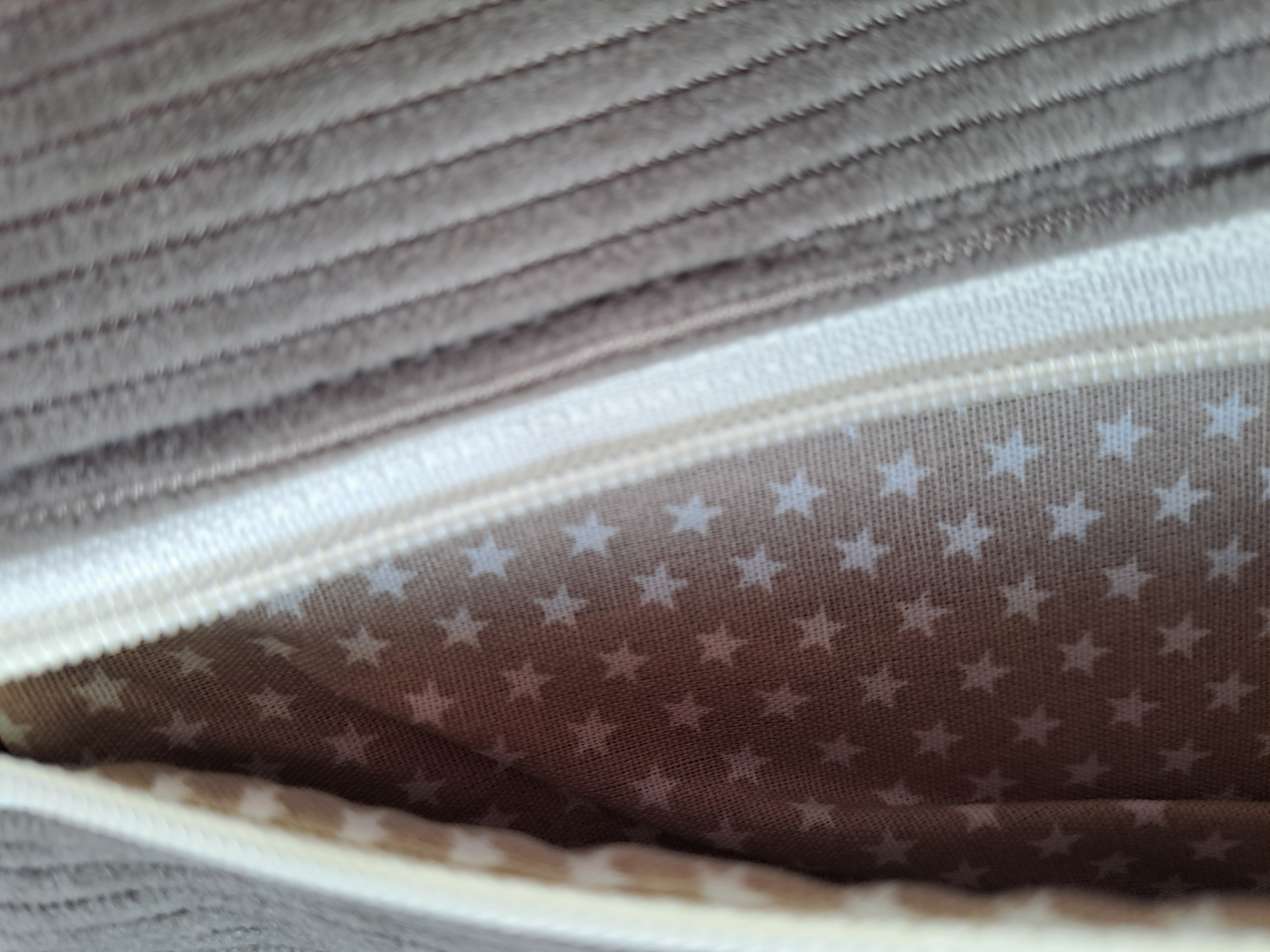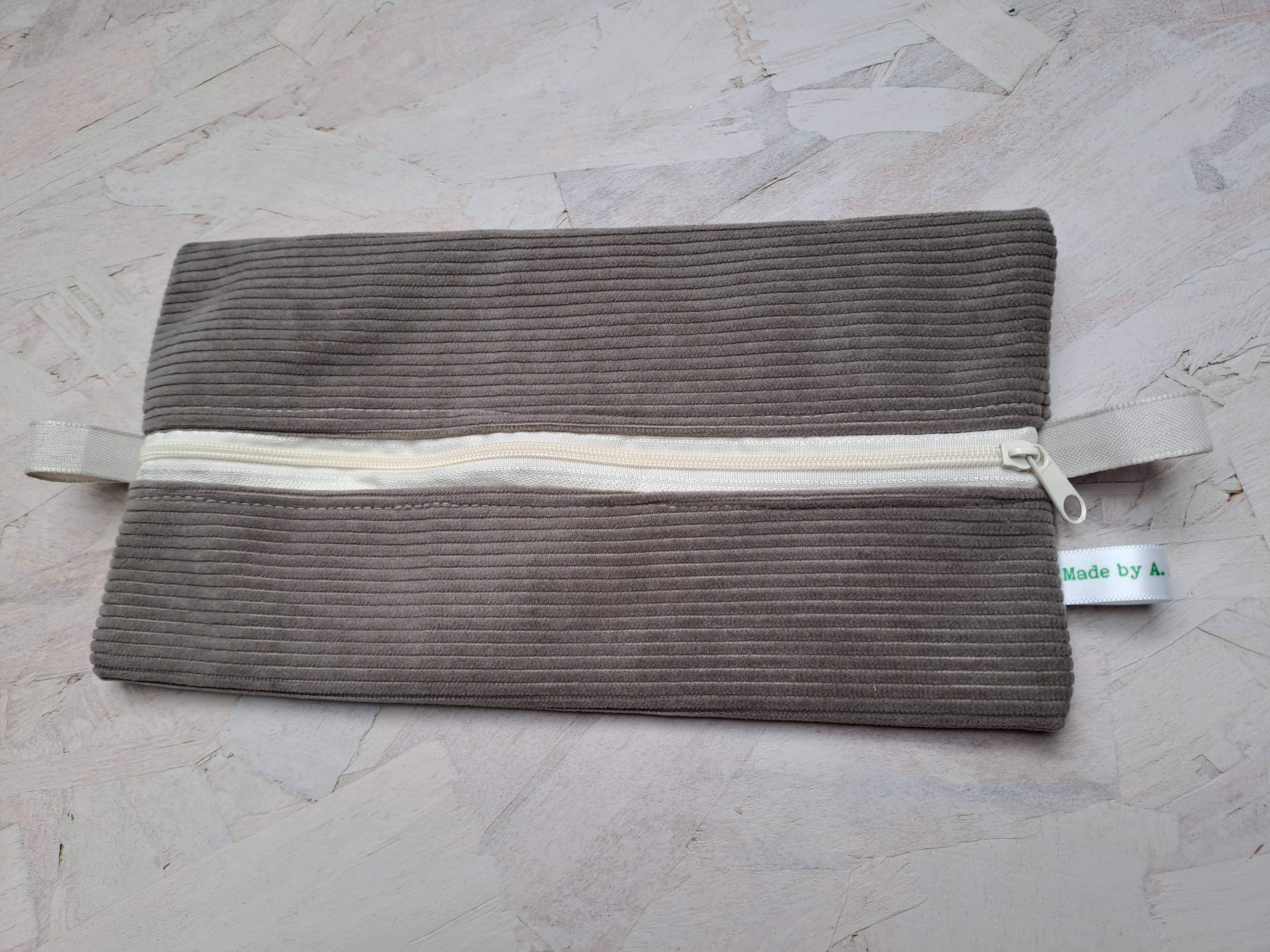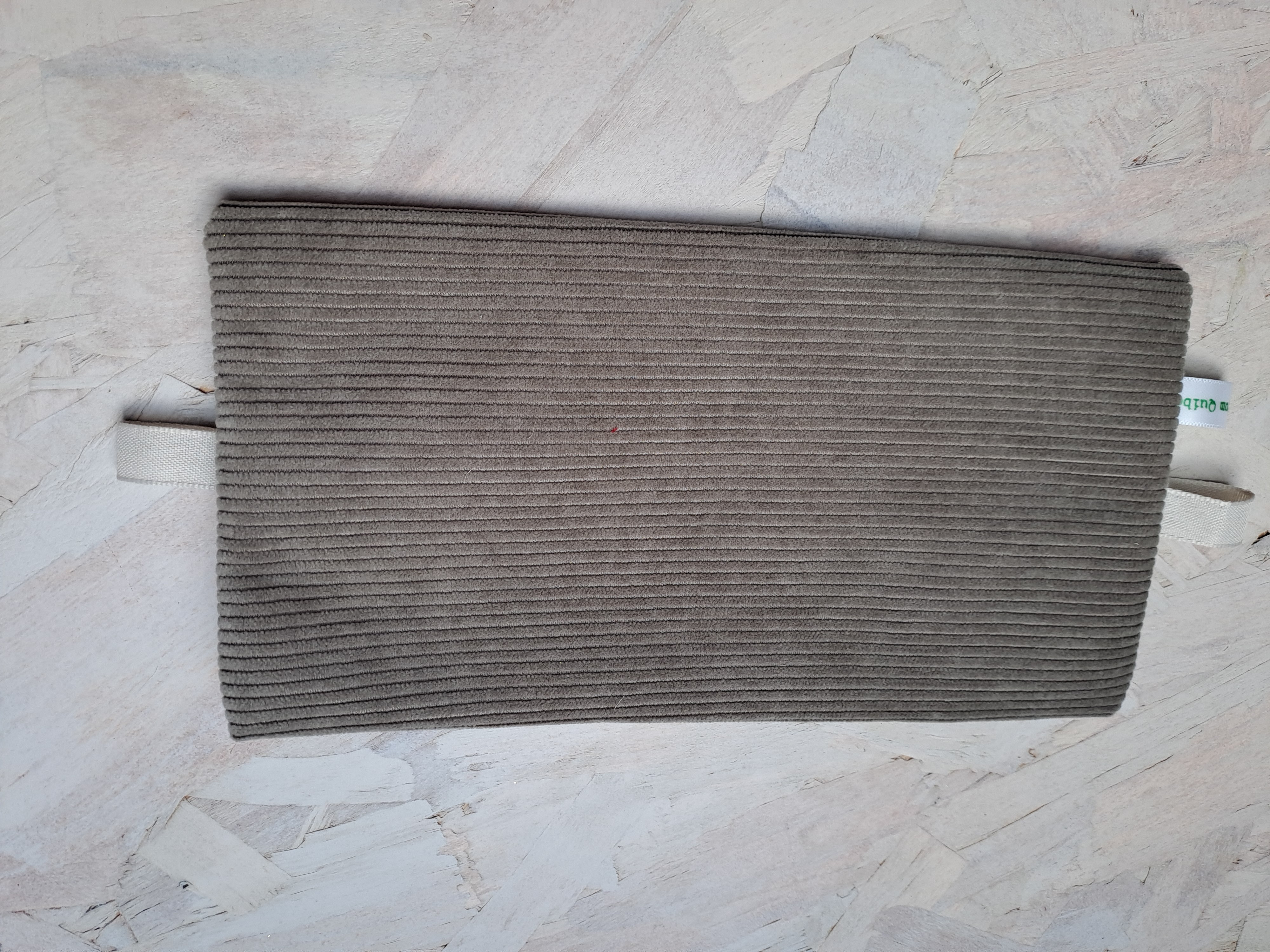 Trousse plate en velours gris et tissu intérieur taupe à petites étoiles blanches