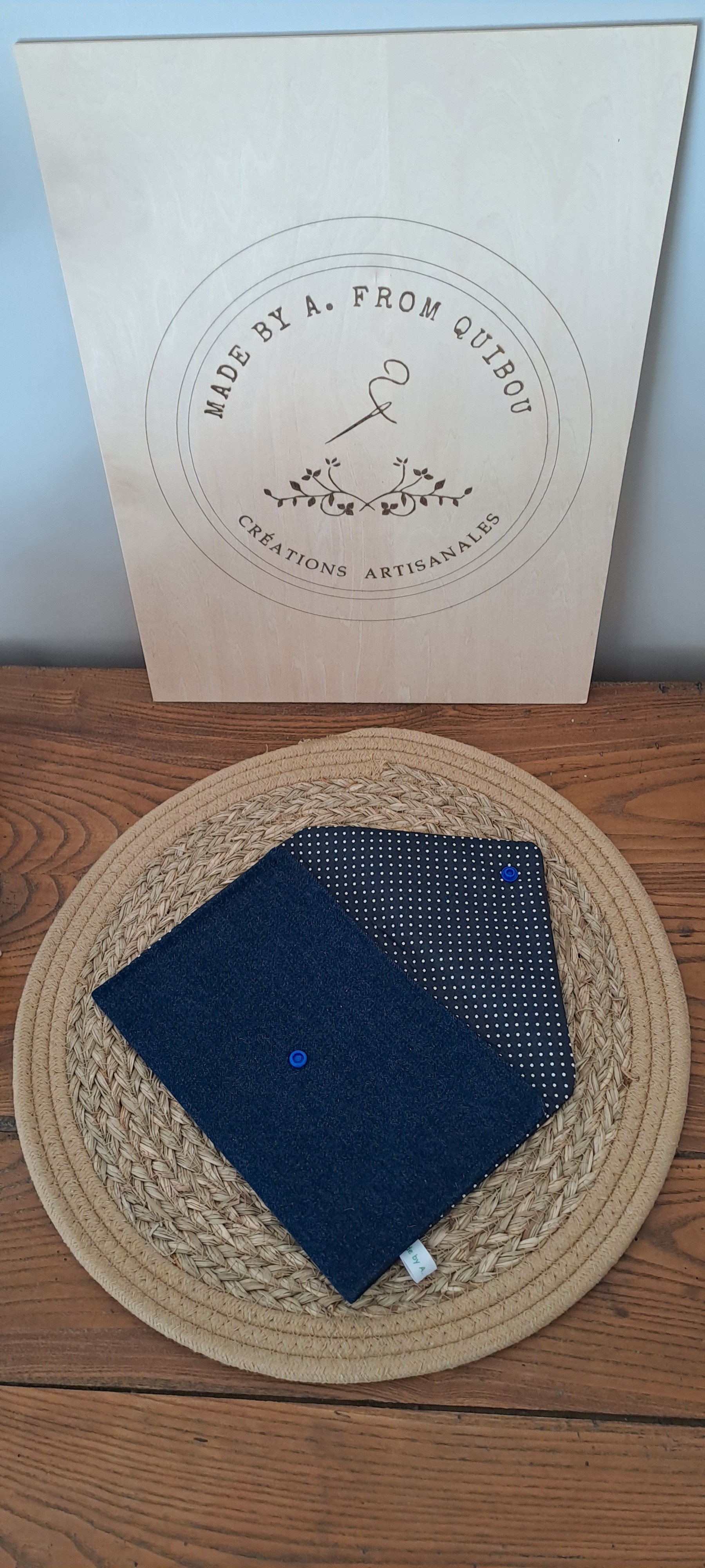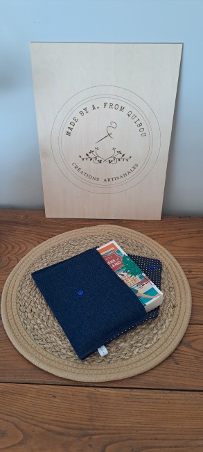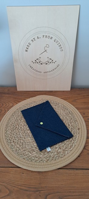 - Tissu extérieur: La pochette est confectionnée dans un tissu denim bleu marine.