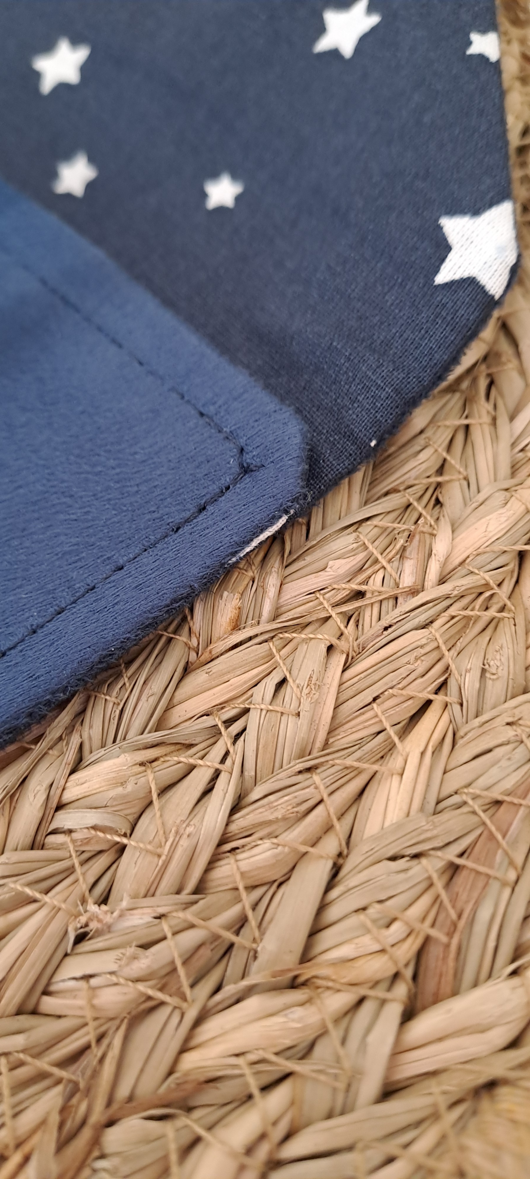 - Tissu intérieur: Tissu intérieur coton de couleur bleu marine avec des étoiles blanches.