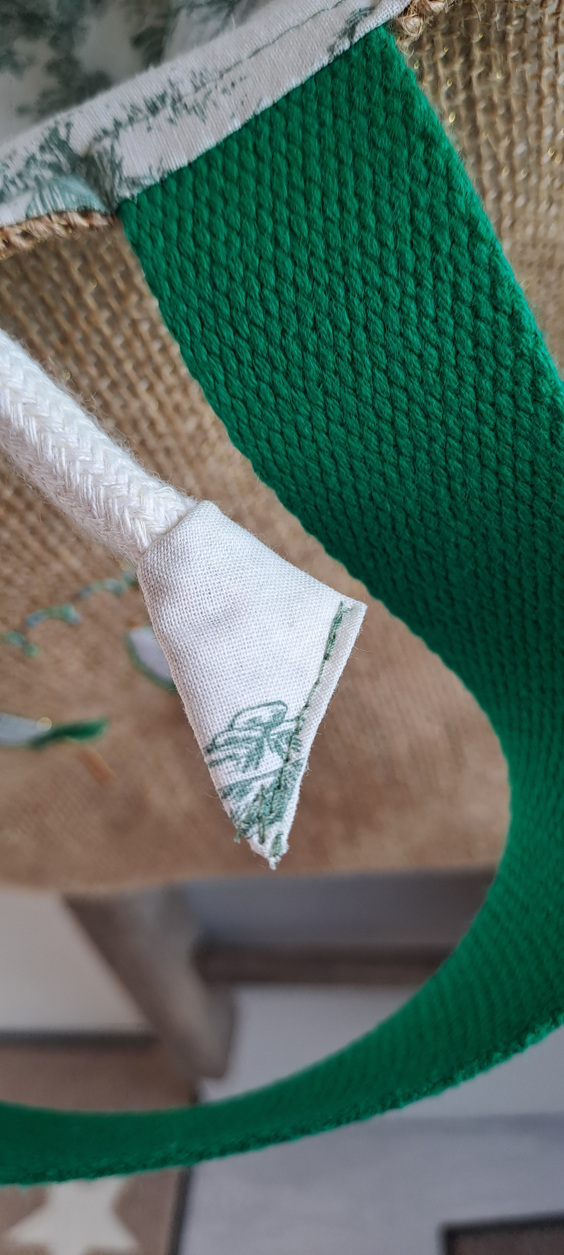 Anses Confortables : De larges poignées en sangle de coton vert sapin assurent une prise en main solide et confortable, même lorsque le sac est chargé.