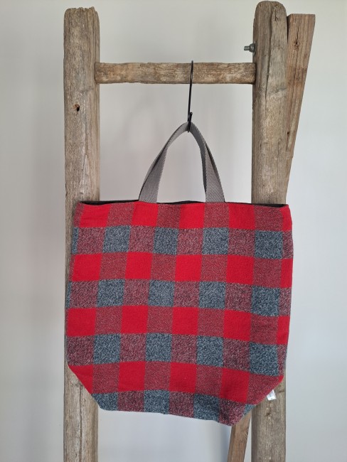 Cabas en tartan rouge et grisCabas