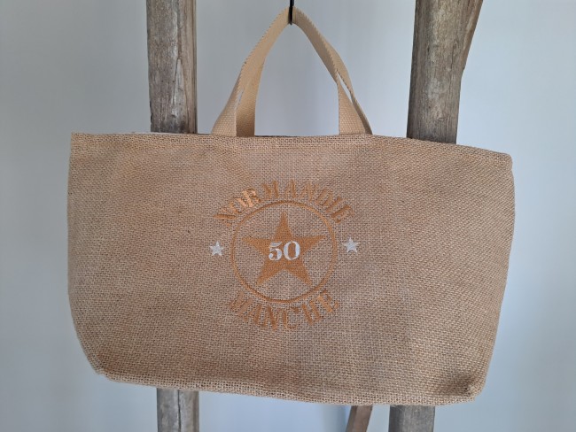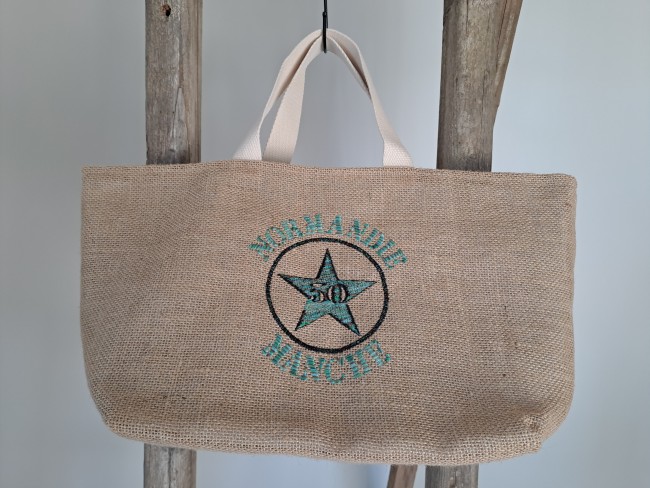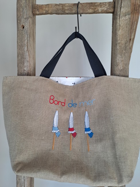 Ca'bois brodé en toile de jute et tissu lin imprimé bord de merCa'bois Brodés