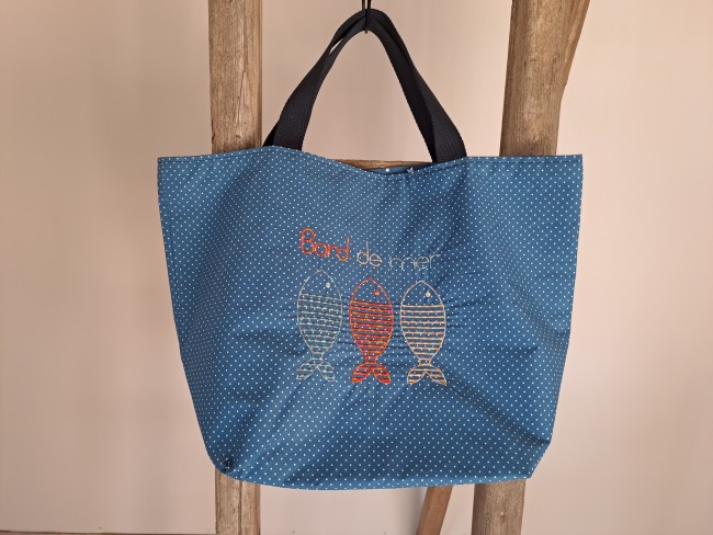 Ca'bois en toile enduite brodé "Bord de mer" et tissu bleu canard étoiles blanchesCa'bois Brodés